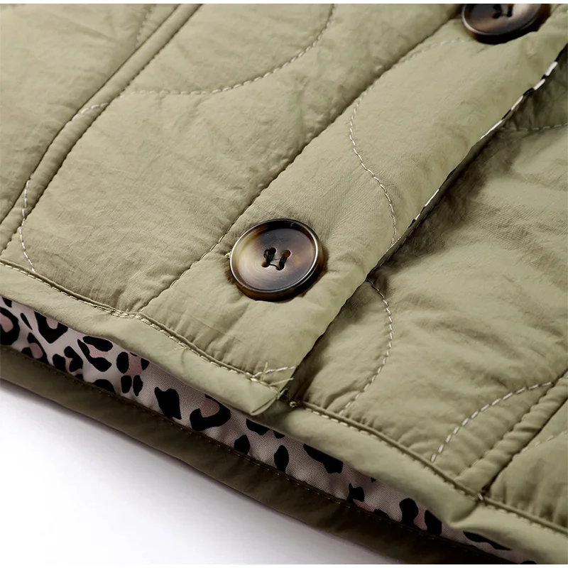 El cierre frontal de botones aporta un toque clásico y sofisticado, manteniendo el diseño moderno y funcional de la chaqueta.